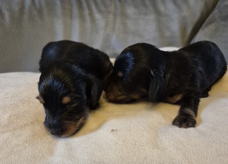 Petite femelle et petit mâle noir et feu, poils longs disponibles