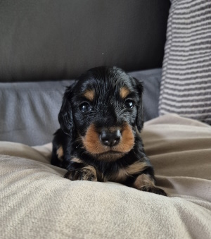 Petit mâle et petite femelle noir et feu poils long